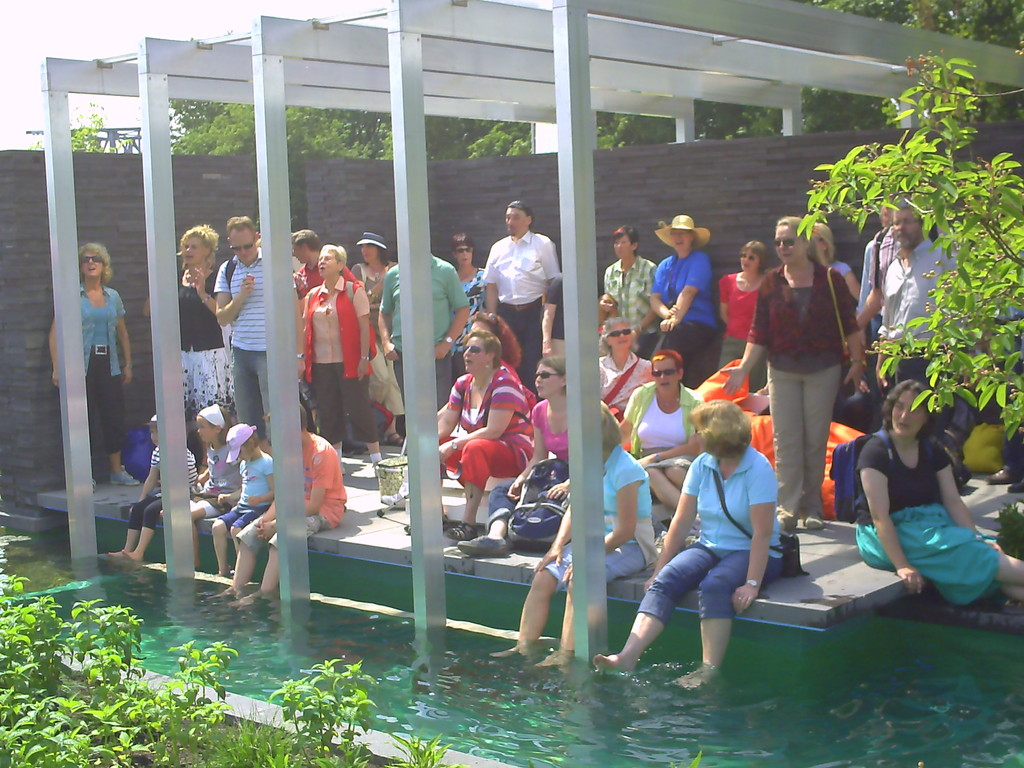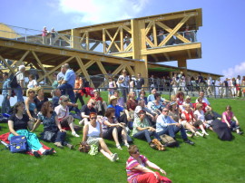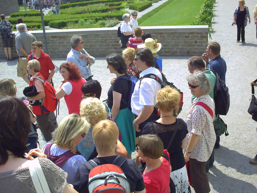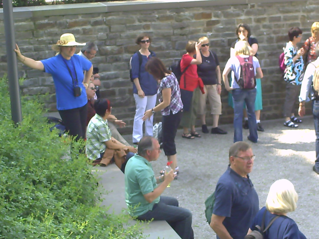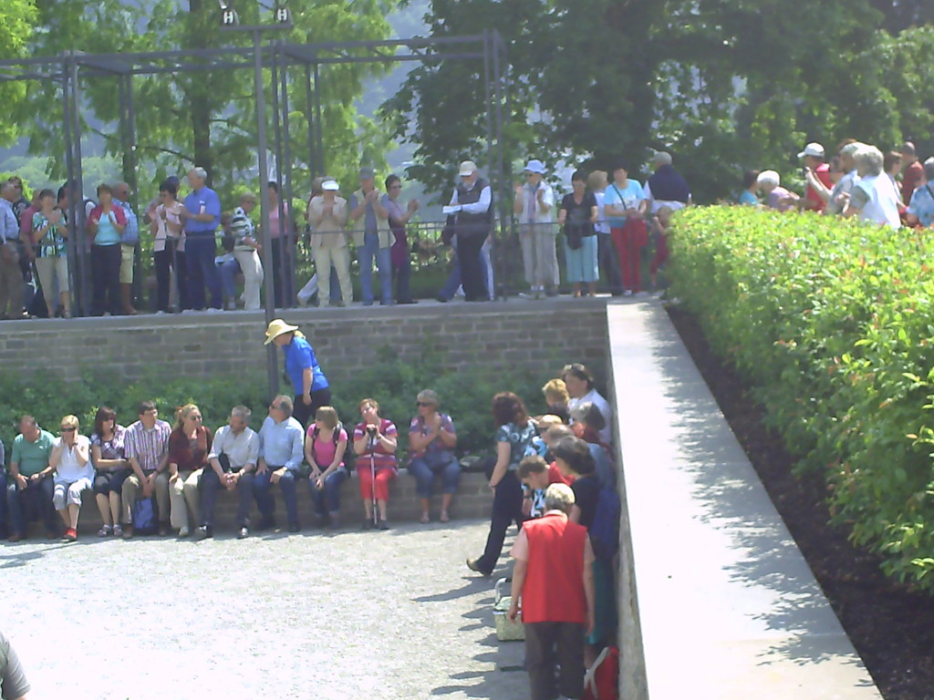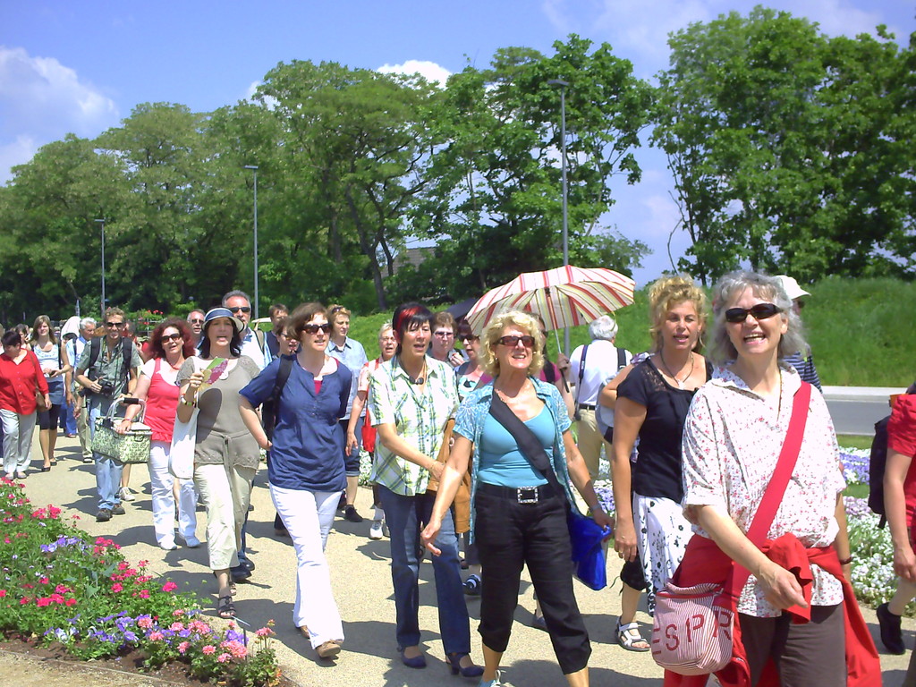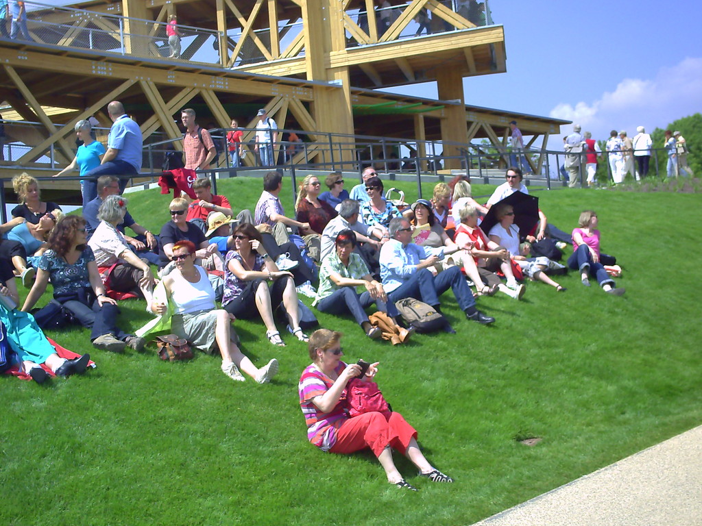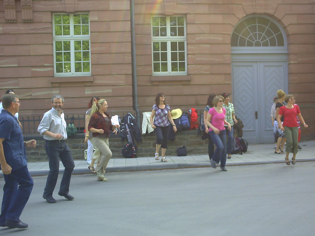 Der Undercoverchor kommt ohne Technik aus und ist doch sehr weittragend im Klang. Im oben gezeigten Bild hat sich der Chor zu einem Picknick niedergelassen. Im linken Bild spaziert er singend durch die Menschenmenge. Die Aufmerksamkeit und die Verwunderung der Gäste ist immer wieder deutlich zu merken.